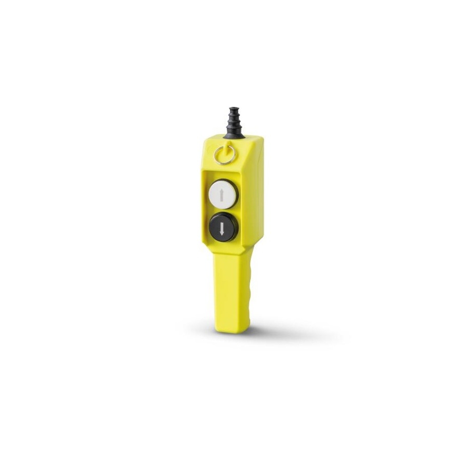 Závěsný ovladač P02, dva směry 2x 1NO +1NC 1KW1ph. Závěsné ovládání se sestavuje na míru zákazníkovi, důležitý ukazatel je počet korpusů na skladě (v tomto případě P02K), ovládání tak můžeme odeslat do 48 hodin, případně upravit pozici tlačítek podle vaši